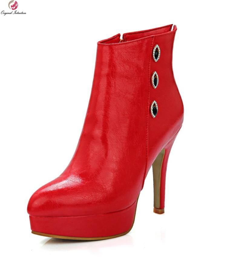 ᐂintention Originale Femmes Bottines Mode Gland Bout Pointu Talons Bottes Belles Noir Rouge Chaussures Femme Taille Ricaine W378