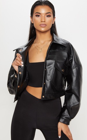 Veste Courte Noire En Simili Cuir Robes Prettylittlething Fr