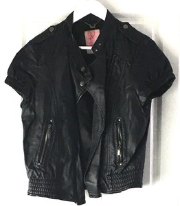 Veste Blouson Style Perfecto Manches Courtes Simili Cuir Noir Rock Biker 38 Ebay