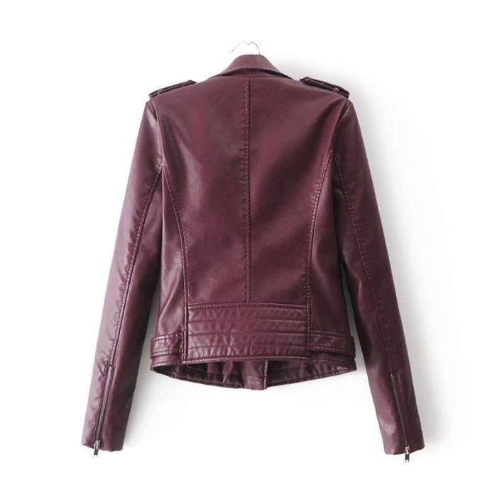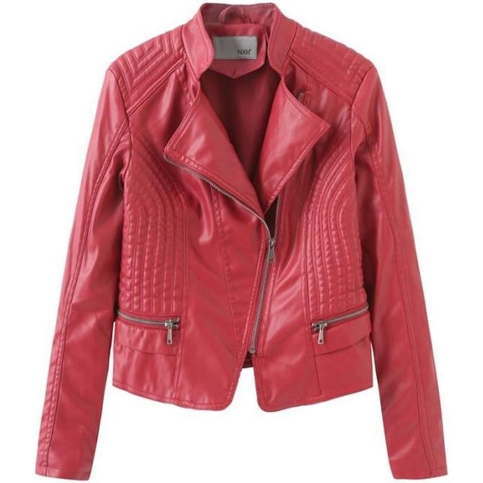 Veste En Simili Cuir Femme Courte Style Couleur Unie Zipper Blouson Femme Mi Saison Rouge Achat Vente Veste Cdiscount