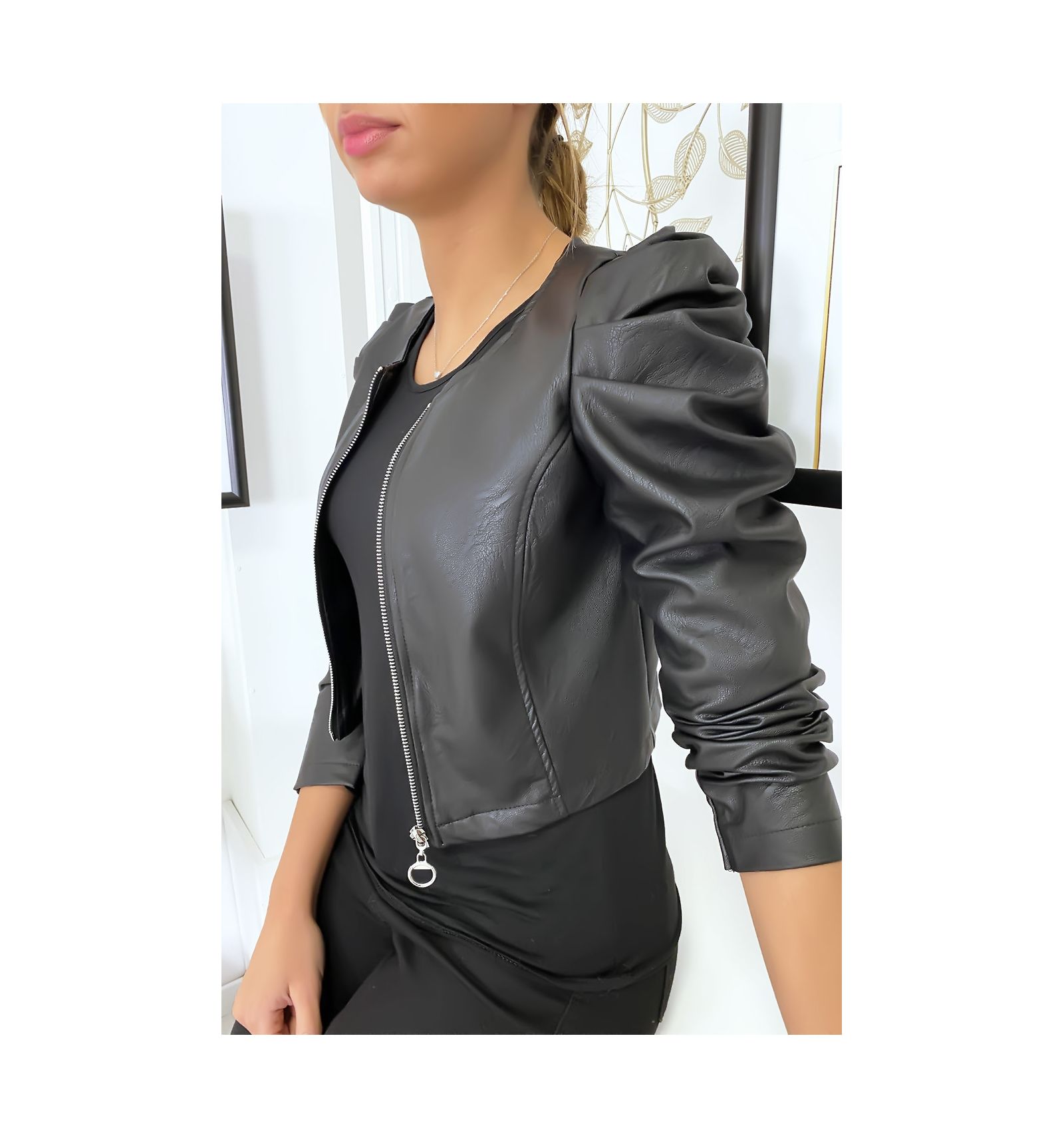 Veste Courte Simili Cuir Femme Sexy Albane Couleur Noir