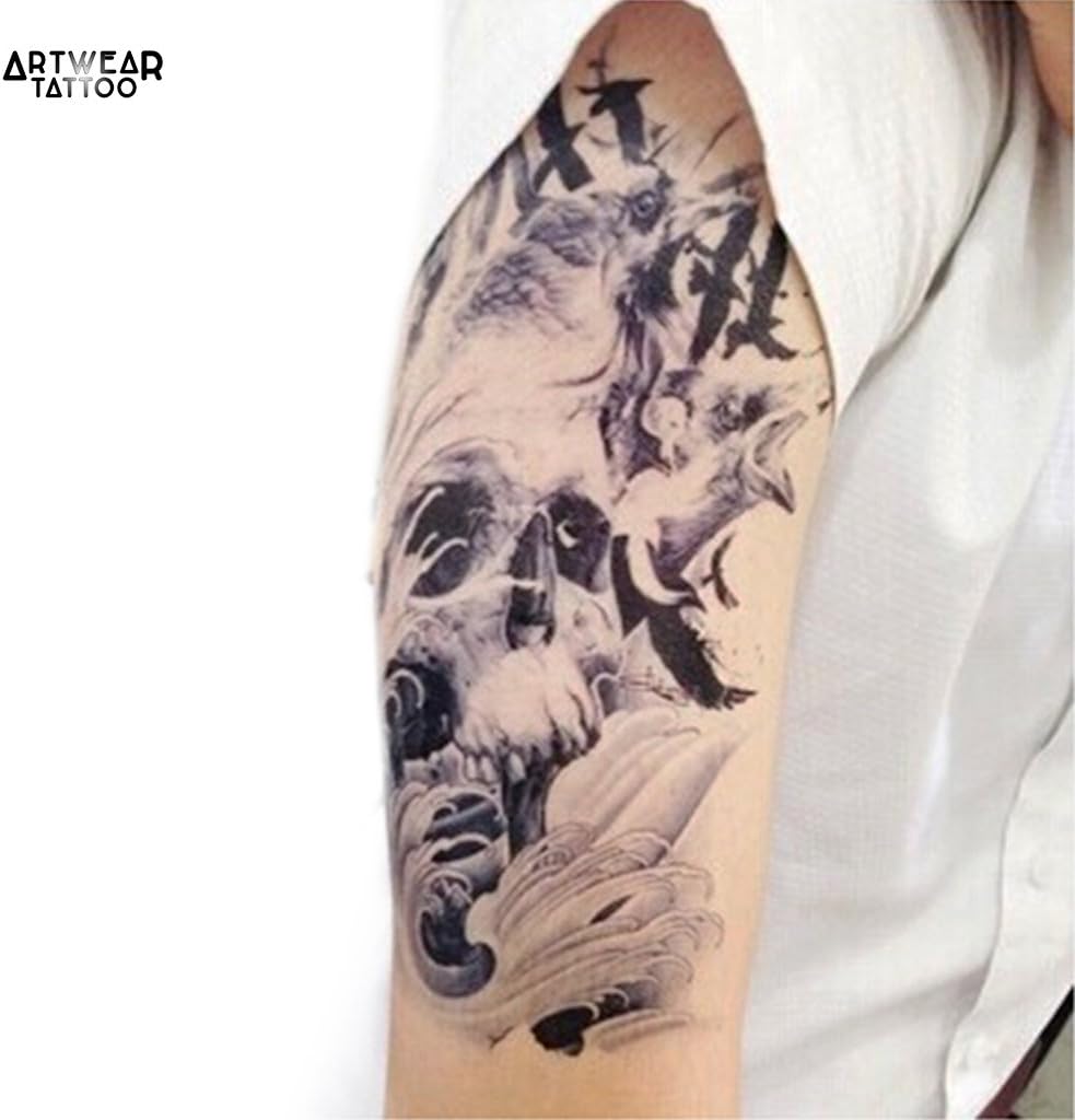 Tatouage Temporaire Tete De Mort Oiseaux Artwear Tattoo Skull B0050 M Amazon Fr Jeux Et Jouets