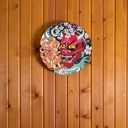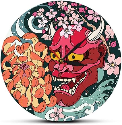 Cchpfcc Gothique Rouge Oni Demon Masque Horloge Murale Japonaise Sakura Pivoine Fleur Art Mural Japon Sherpa Mal Mort Rouge Mort Home Decor Horloge Montre Amazon Fr Cuisine Maison