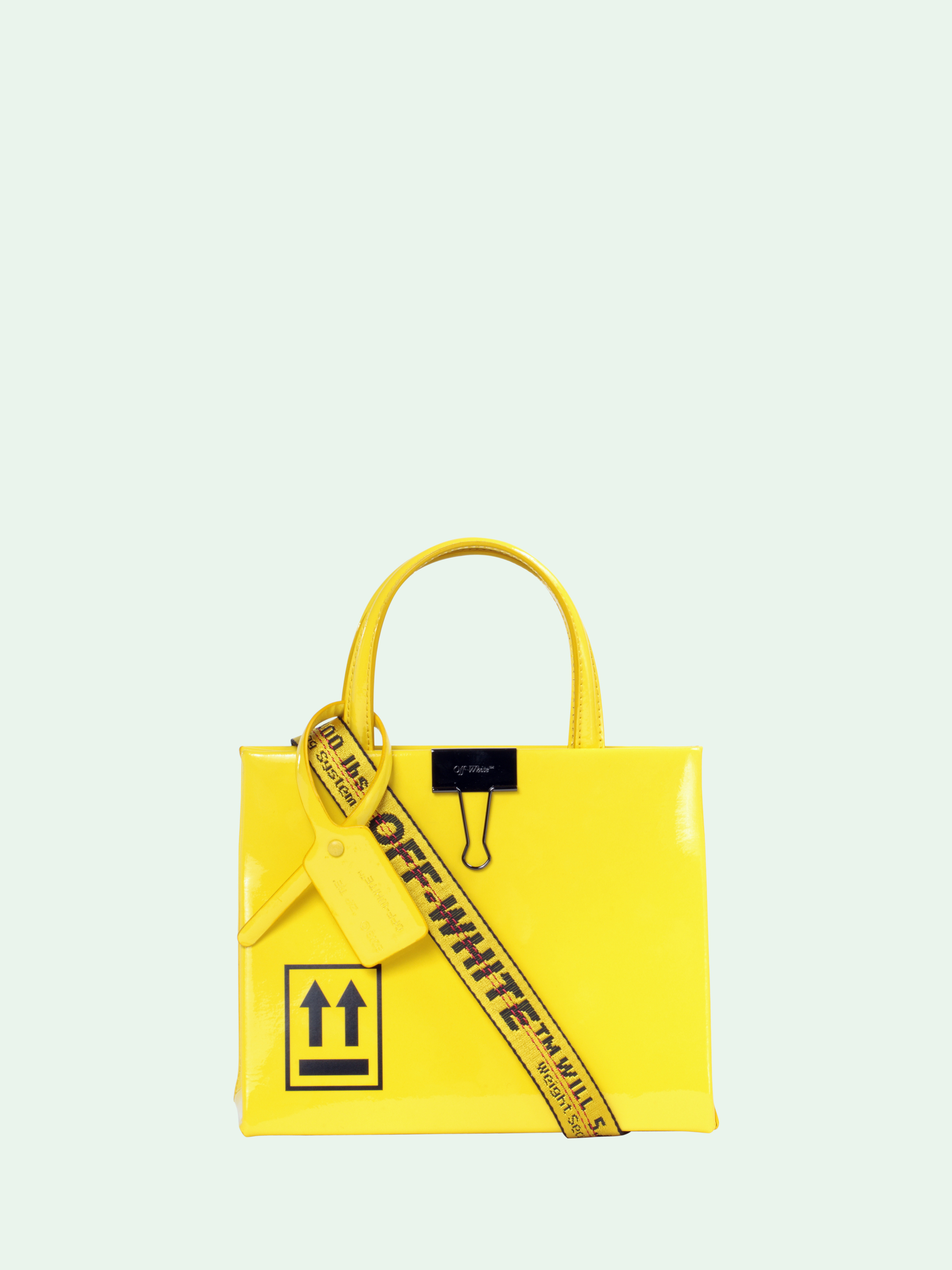 Off White Yellow Mini Patent Leather Tote Bag Browns