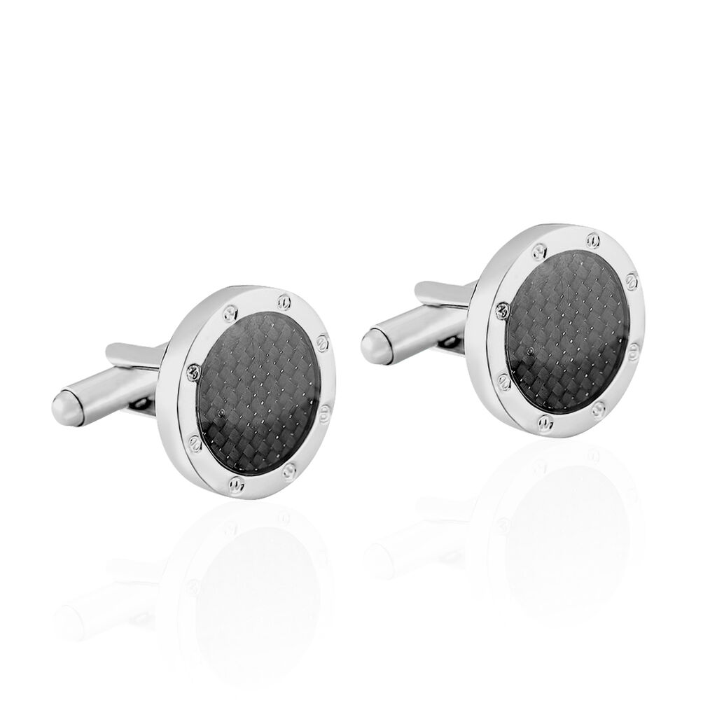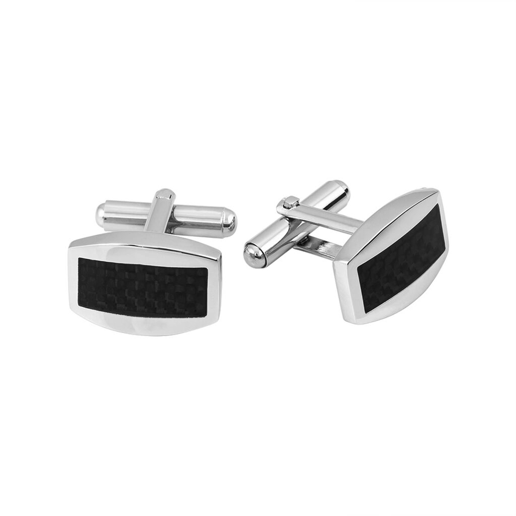 Boutons De Manchette Homme Effet Carbonne Noir Argente