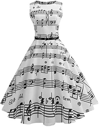 Femmes Robes Soiree Vintage Annees 50 Audrey Hepburn Pin Up Noel Imprime Sans Manches A Ligne Avec Ceinture Fille Robe Retro Rockabilly Classique Swing Robe Mini Robe Elegant Robe Amazon Fr Vetements Et