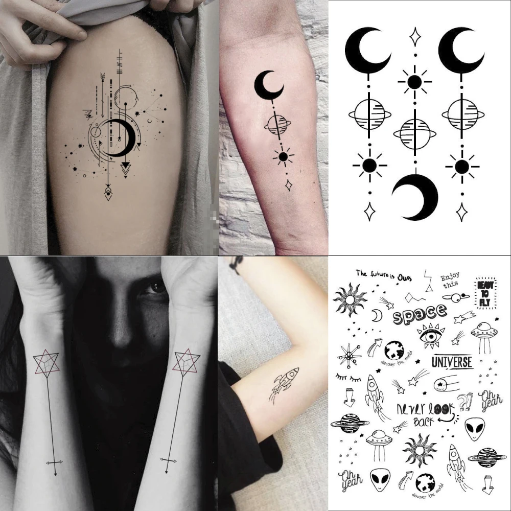Noir Planete Lune Phase Temporaire Tatouage Autocollant Etanche Univers Soleil Adulte Hommes Femmes Bras Main Cou 15x11cm Aliexpress
