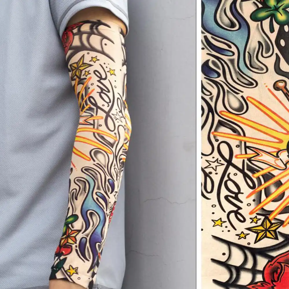 Manchon Tatouage Homme Femme Bras Protecteur Faux Tatouage Manche Elastique Uv Protection Cool Imprime Resistant Au Soleil Unisexe Chauffe Bras Aliexpress