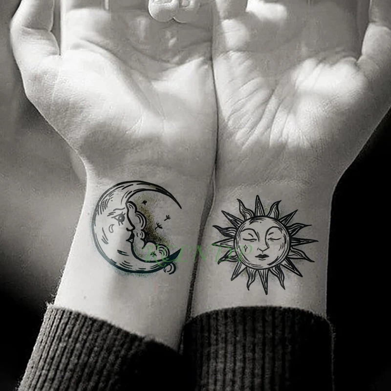 Autocollant De Tatouage Temporaire Impermeable Faux Tatouage Soleil Et Lune Tatouage Flash Bras Pour Hommes Femmes Et Filles Aliexpress