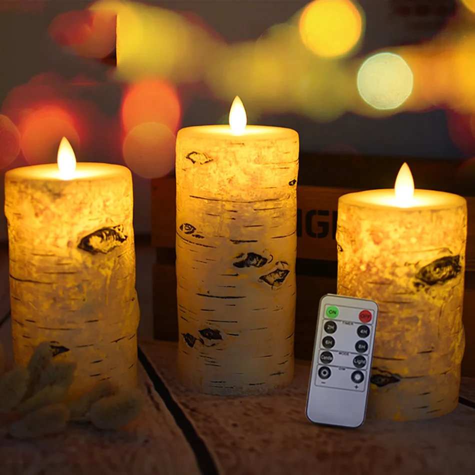 Pilier Effet D Ecorce De Bouleau Sans Fil Bougie A Batterie Cire De Paraffine Bougies De Noel Pour Decor De Chambre A Domicile Bars Aliexpress