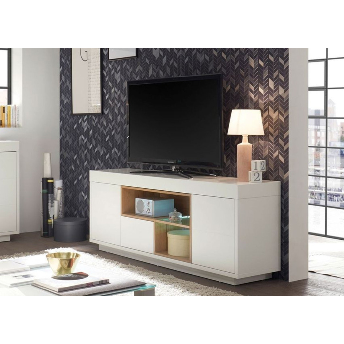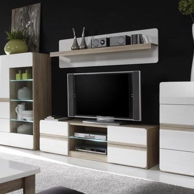 Meuble Tele Blanc Laque Brillant Et Couleur Bois Sofamobili