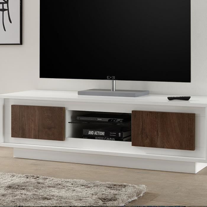 Meuble Tv Moderne Blanc Laque Mat Et Couleur Noyer Erine 6 Achat Vente Meuble Tv Meuble Tv Moderne Blanc Laque Soldes Sur Cdiscount Des Le Janvier Cdiscount