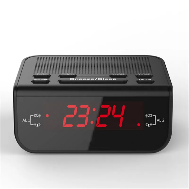 Design Moderne Reveil Fm Radio Avec Double Alarme Buzzer Snooze Sommeil Fonction Compact Numerique Led Rouge Affichage De L Heure Horloges Aliexpress