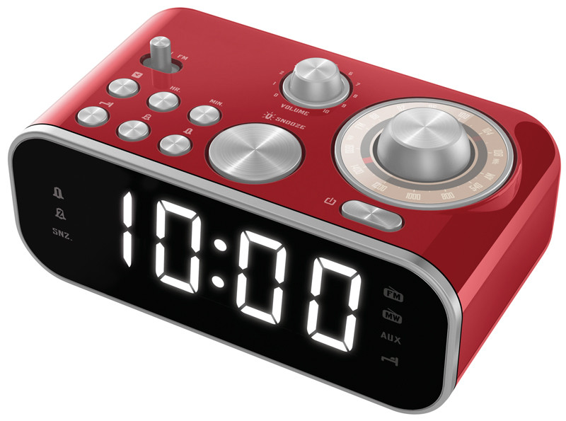 Radio Reveil Rouge Moderne Silencieux Sur Secteur Grand Affichage