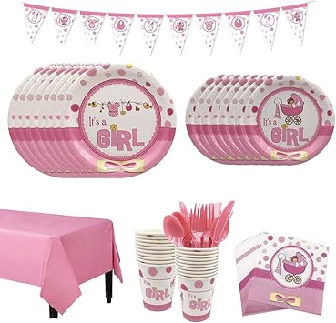 Dreamjing 66pcs Decoration De Table Bapteme Fille Vaisselle Jetable Assiettes Rose Pour It S A Girl Baby Shower Party Boy Or Girl Decoration Fete D Anniversaire Fille Amazon Fr Jeux Et Jouets