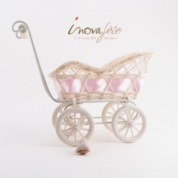 Landau Osier Blanc Ruban Rose La Deco Table Bapteme Fille Accessoires Et Decoration De Fete
