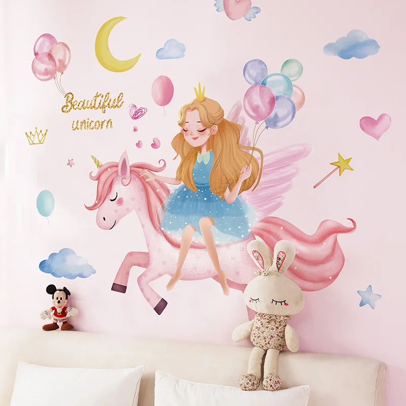 Licorne Etoile Lune Princesse Chambre Fille Chambre Mignon Dessin Anime Autocollant Mural Enfants Chambre Decoration Murale Papier Peint Decalcomanie Aliexpress