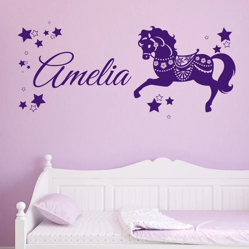 Personnalise Fait Nom Mignon Cheval Poney Licorne Autocollant Mural Beau Vinyle Stickers Muraux Filles Chambre Enfants Enfants Chambre Decoration Aliexpress