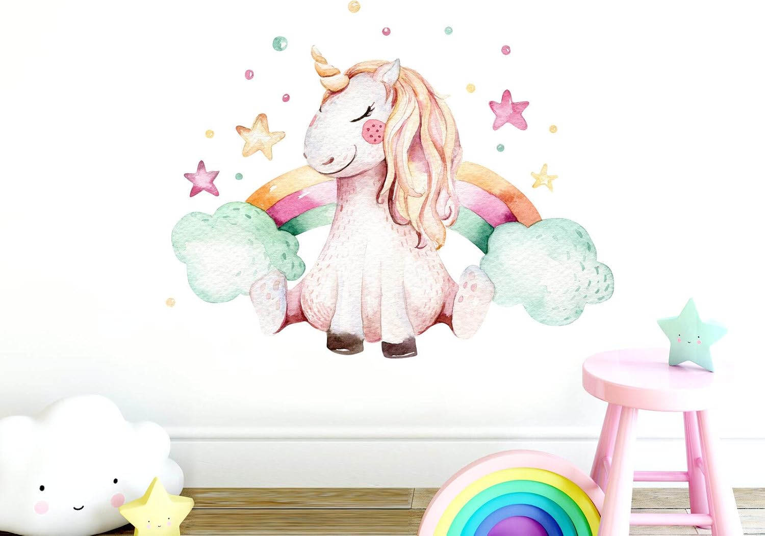 Wandsticker4u Aquarelle Stickers Muraux Fille Licorne Et Arc En Ciel 110x110 Cm I Coeur Etoiles Cheval Animaux Autocollants I Sticker Mural Pour Chambre D Enfant Bebe Creche Princesse Amazon Fr Bricolage