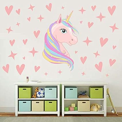 Lxhlxn Stickers Muraux Licorne Stickers Chambre D Autocollants Decoration Dortoirs Fille Coeur Stickers Muraux Amazon Fr Cuisine Maison