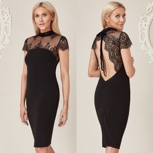Femmes Stephanie Pratt Ouvert Bas Dentelle Dos Noir Moulant Cocktail Robe Soiree Ebay