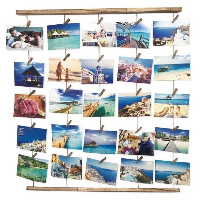 Cadre Photo Mural En Bois Avec Corde Et 30 Petites Pinces 66cm X 74cm Decoration Murale Idee Cadeau Pour Photo Dessin Me Achat Vente Cadre Photo