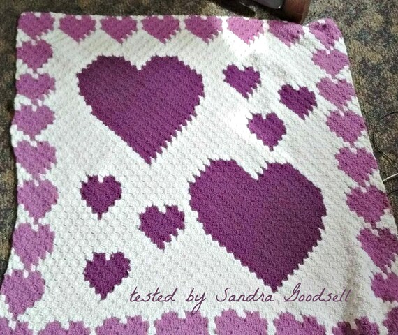 Heart Border Afghan C2c Crochet Pattern Written Row Counts Etsy