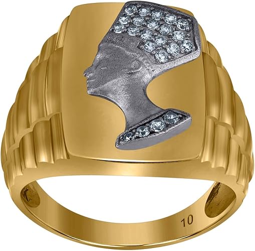 Chevaliere Nefertiti En Or Bicolore 10 Carats Avec Zircone Cubique Texture Mesure 19 6 X 3 4 Mm De Large Qualite Superieure A L Or 9 Carats Amazon Fr Bijoux