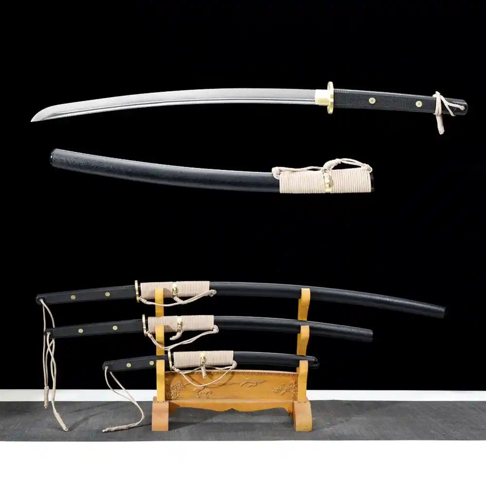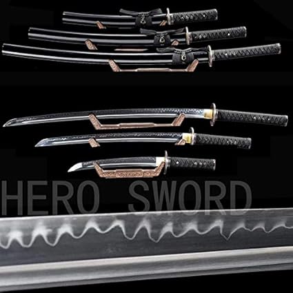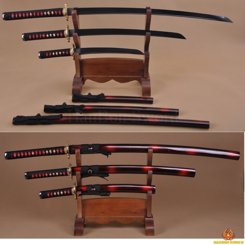 Handmade Carbon Steel Black Japanese Wakizashi And Katana Samurai Sword Set Free US Shipping USD Add to Cart Wishlist Handmade Chinese Character Theme Real Hamon Full Tang Short Katana Tanto Swords Verified Purchase Diana Lira California, United States. Authentic katana, wakizashi, tanto and more CHOOSE YOUR SWORD > Best Sellers Dara Clay Tempered Folded Steel Katana Samurai Sword $ Blue Blade Samurai Katana High Carbon Steel with Dragon Sheath $ Yamamoto Clay Tempered Katana Samurai Sword $ iwa Katana Samurai Sword. This set of samurai sword consists of 1 katana, 1 wakizashi, and 1 tanto The blade is made of 1060 carbon steel It is fully handforged, quenched, polished KATANA WAKIZASHI TANTO 1 katana 1 wakizashi 1 tanto with sayaThe sword stand holder is not included!.