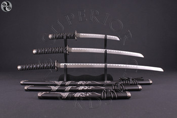 Gloss Black Dragon Hilt Samurai Sword 3 Set Katana Wakizashi Tanto War Sword