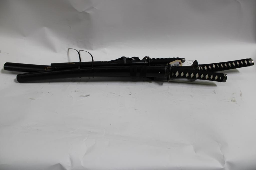 Black Kanji Samurai Sword Set Katana Wakizashi Tanto 3 Pc Property Room