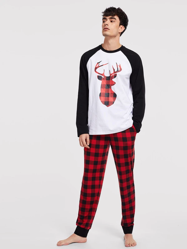 Homme Ensemble De Pyjama A Carreaux A Manche Raglan Mode En Ligne Shein France
