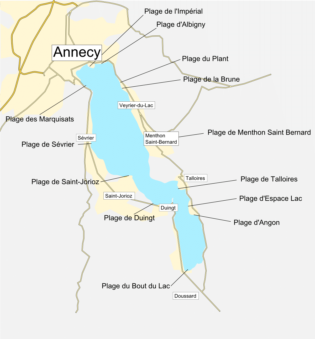 Lac d'Annecy Lake Annecy Tourist Office, HauteSavoie discover a selection of hotels, campsites, furnished accommodation, residences, bed and breakfast, holiday villages, restaurants or unusual places Information on events and activities in Annecy beach, carnival, Lake festival and fireworks, Maxi Race, marathon A year in Lake Annecy. Are you looking for the map of Lac d'Annecy?. Le roc de Chère est une avancée rocheuse boisée située sur le territoire de la commune de TalloiresMontmin qui domine le lac d'Annecy de 0 m Roc de Chère est située à 2 km au nordest de Camping International du lac d'Annecy Photo Bnoa, CC BYSA 40.