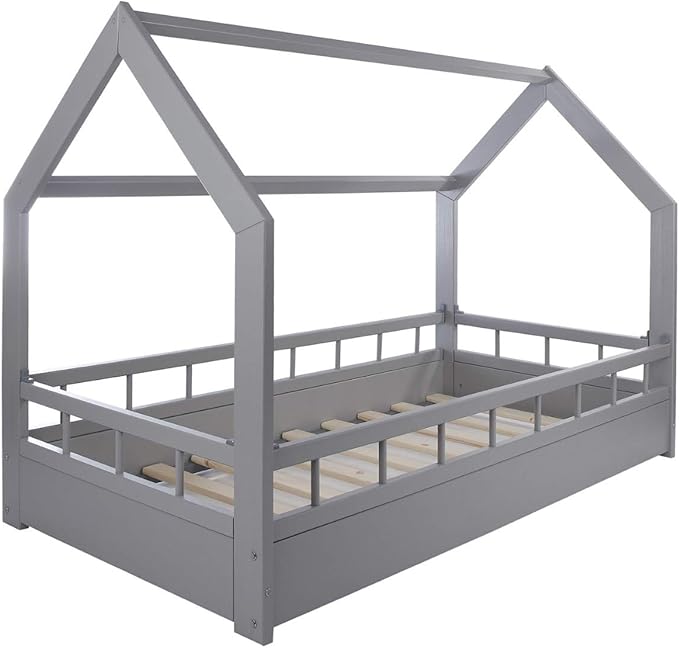 Solenzo Gris 80x160cm Lit Cabane Pour Enfant Avec Sommier Et Barriere La Chambre De Bebe Mobilier