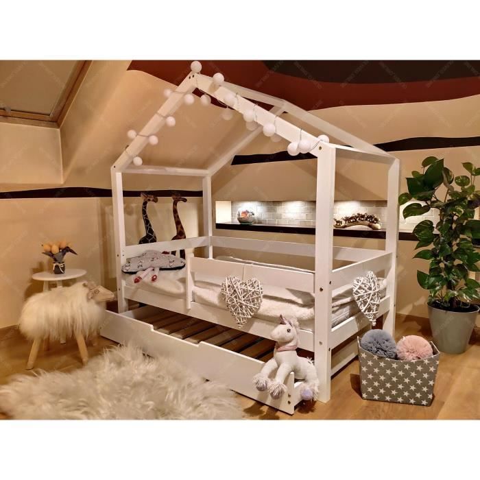 Lit Cabane Maison Pour Enfants Avec Barrieres Et Tiroir Couleur Blanc 160x70cm En Bois Achat Vente Structure De Lit Mon Lit Cabane Lits Maison Soldes Sur Cdiscount Des Le Janvier Cdiscount