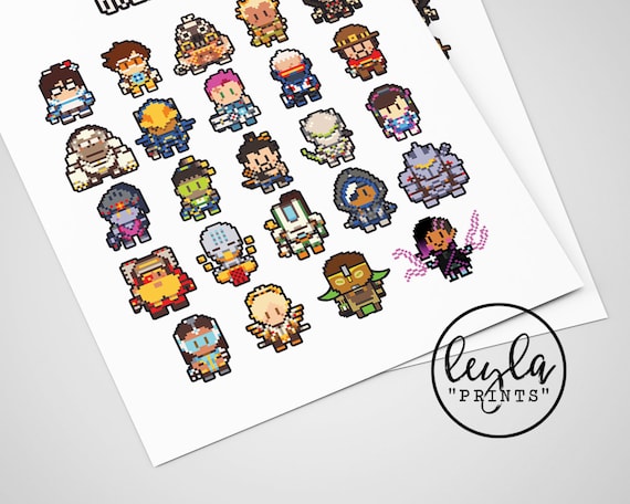 Overwatch Print Pixel Art Heroes A6 A5 Illustration Print Etsy