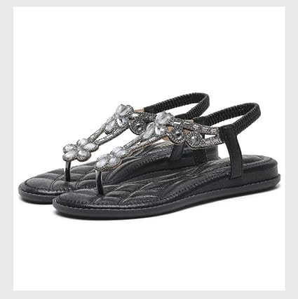 Femmes Sandales Plates Ete Sandales Noires Pour Les Femmes Sandales Bohemia Rhinestone Faible Occasionnels Television Clip Antiderapant Pieds Tongs Sandales De Plage Confortable Locations De Chaussure Amazon Fr Sports Et Loisirs