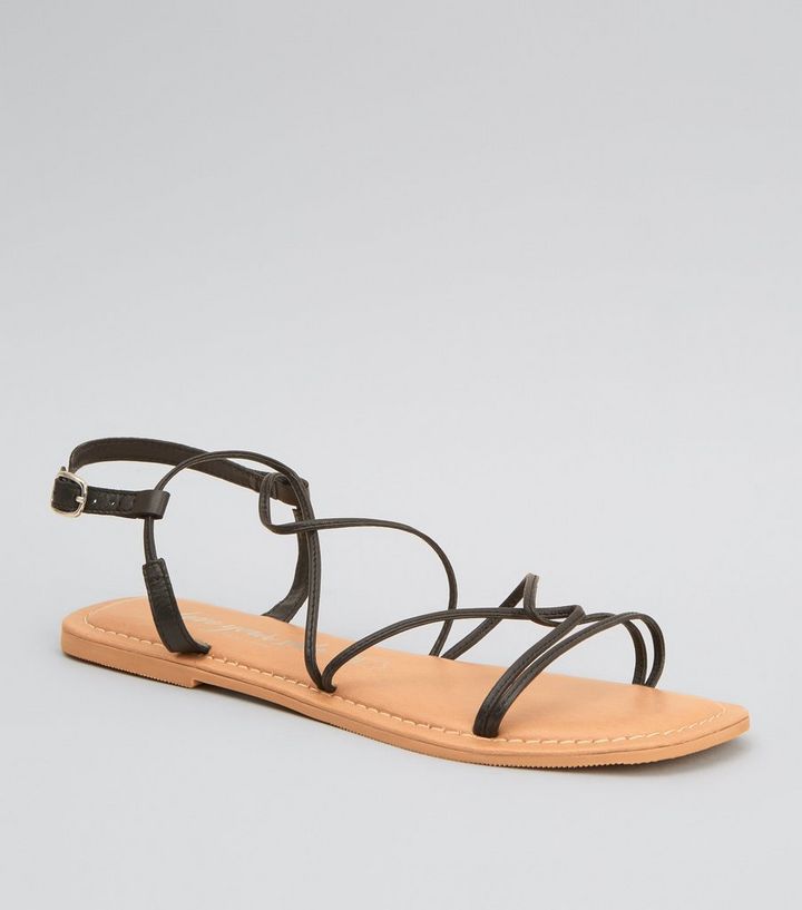 Sandales Noires Chic Nana Sandales Noires Plates De Style Spartiate Montante