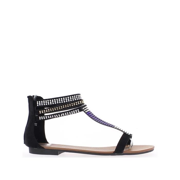 Sandales Plates Noires Taille 36 Noir Achat Vente Sandale Nu Pieds Cdiscount