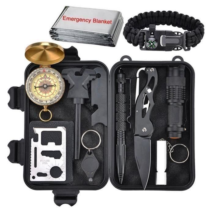 Kit De Survie 11 En 1 Outil De Survie En Plein Air Avec Bracelet De Survie Couteau Pliant Boussole Couverture D Urgence Prix Pas Cher Cdiscount