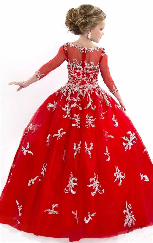 15 Nectarien Fleur Rouge Fille Robes Longues Manches Perlee Parti Robes Pour Enfants Petites Filles De Soiree Robes Robe Daminha Aliexpress