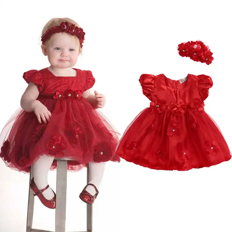 Robes Pour Petites Filles Vetements D Ete Motif Floral Rouge En Tulle Pour Petites Filles Avec Bandeau A Manches Courtes Pour Tete De Mariage Et Fete Aliexpress