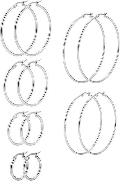 Snagarog 6 Paires Boucle D Oreille Creoles Avec 6 Tailles 1 5 2 3 4 5 6 Cm Boucle D Oreille Anneaux En Acier Inox Anti Allergie Cadeau De Bijoux Pour Femme Fille Amazon Fr Bijoux