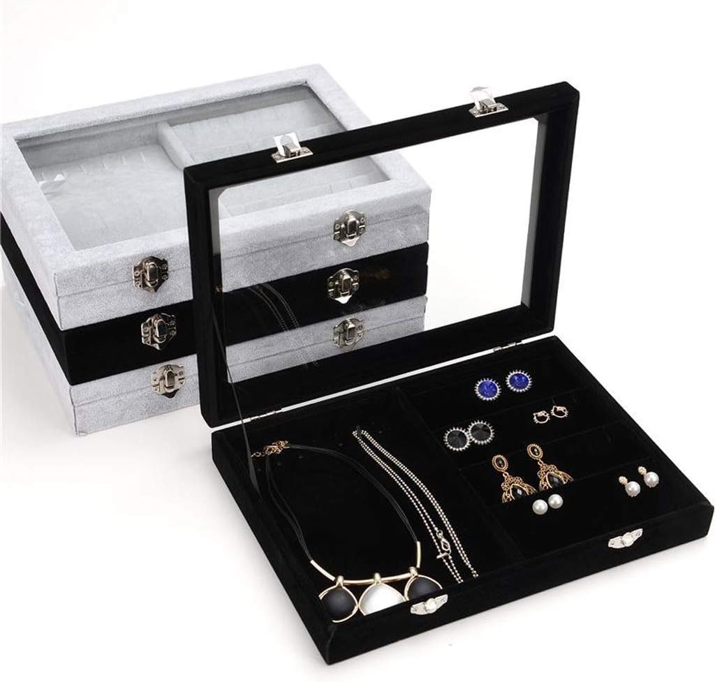 Amazon Com Ldg Presentoir A Bijoux Collier Boucle D Oreille Anneaux Velours Coffrets A Bijoux Multifonctionnel Etanche A La Poussiere Color Black A Home Kitchen