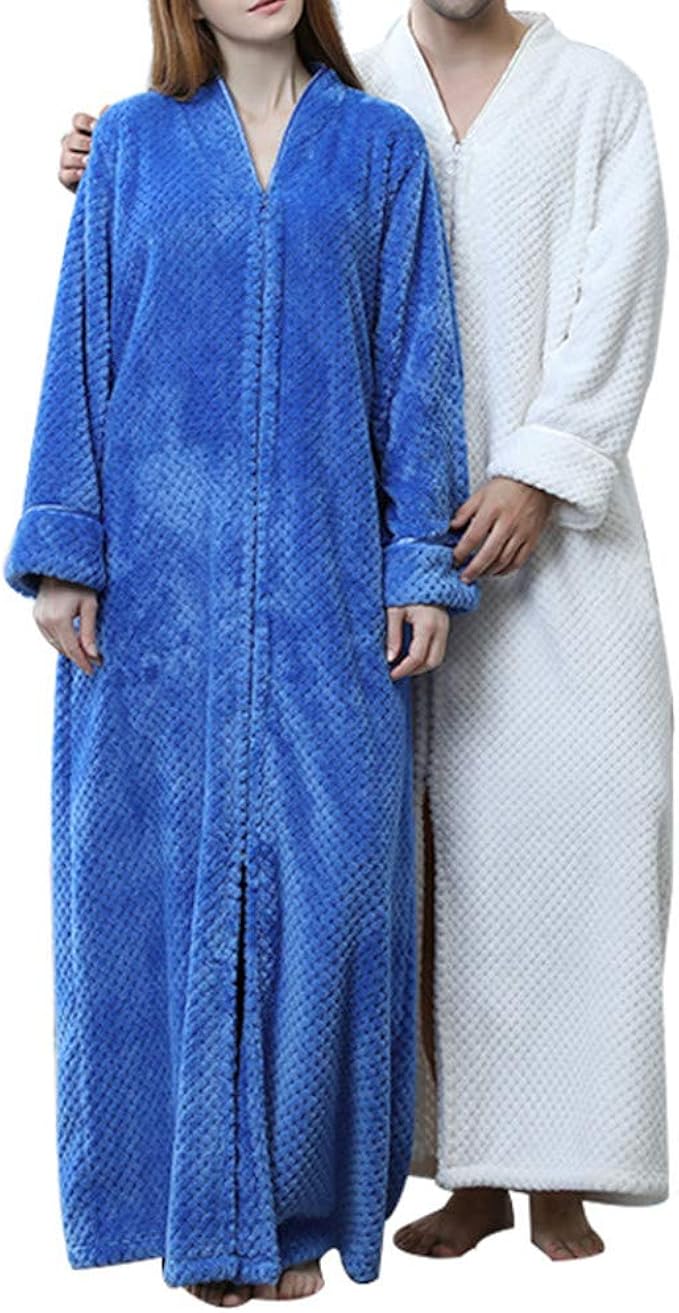 Godgets Chemise De Nuit Longue Femme Manche Longue Unisexe Couple Pyjama Kimono Maternite Peignoir Robe De Chambre Polaire Zippee Bathrobe Nightgown Hotal Spa Homewear Romper Cadeau De Noel Femme Linge De Bain