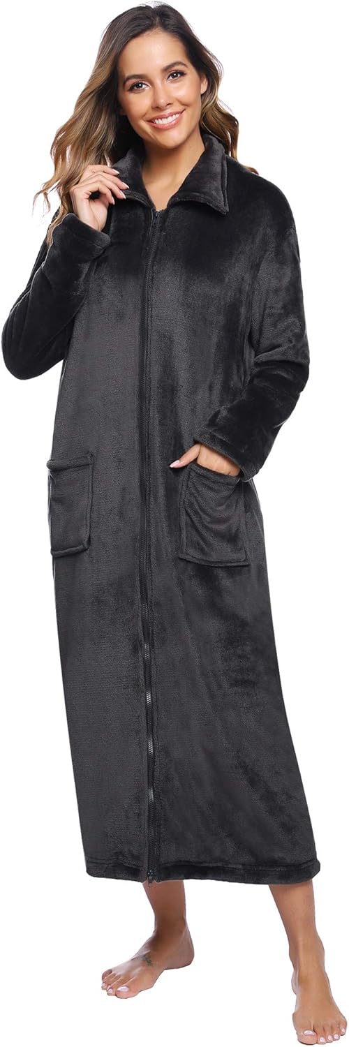 Femmes Zip Boutons Sur Le Devant En Polaire Douce Longue Robe De Chambre Peignoir Robe De Chambre Chaude Ebay