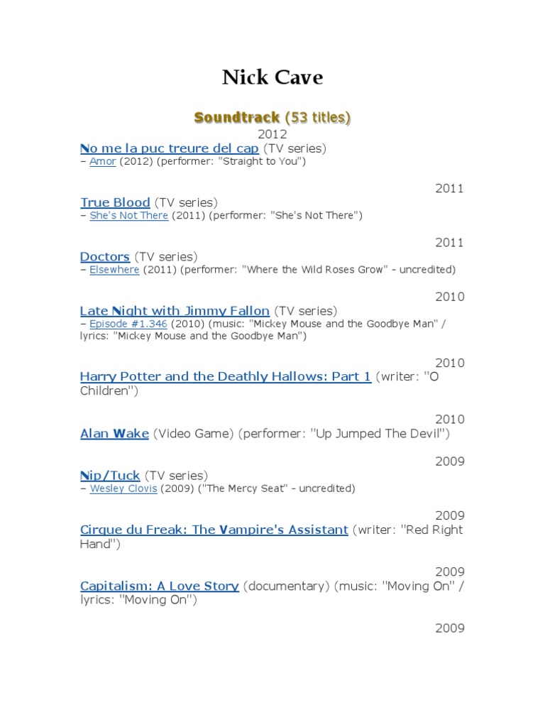 Nick Cave Music Tv Tropes