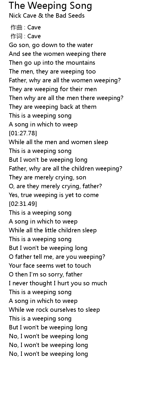 The Weeping Song Lyrics Follow Lyrics