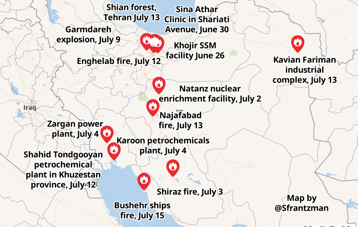 Seth Frantzman My Updated Map Of Iranian Mysterious Fires And Explosions Between June 26 And Today Including The Important One At Natanz Some Accidents Some More Suspicious Iran T Co Tafxhraj8o