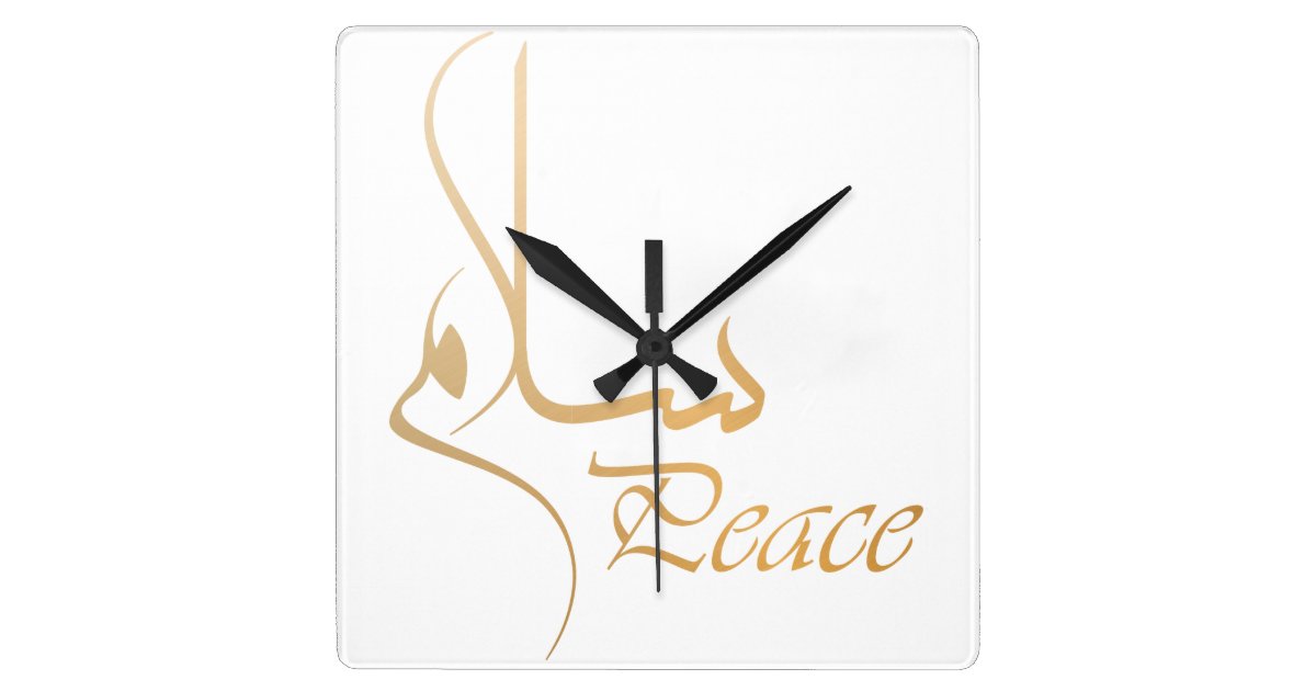 Horloge Carree Paix D Or Avec La Calligraphie Arabe Salam Zazzle Fr